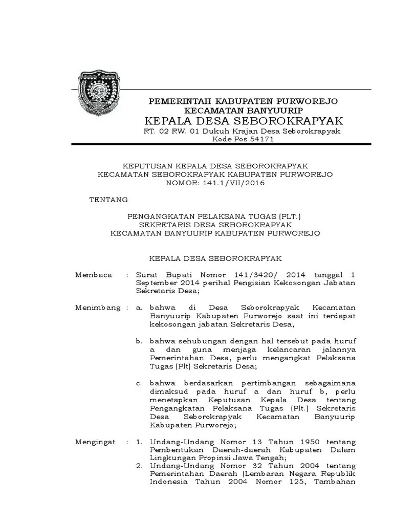 Contoh format surat keputusan sk sekdes sekretaris desa … from i0.wp.com.